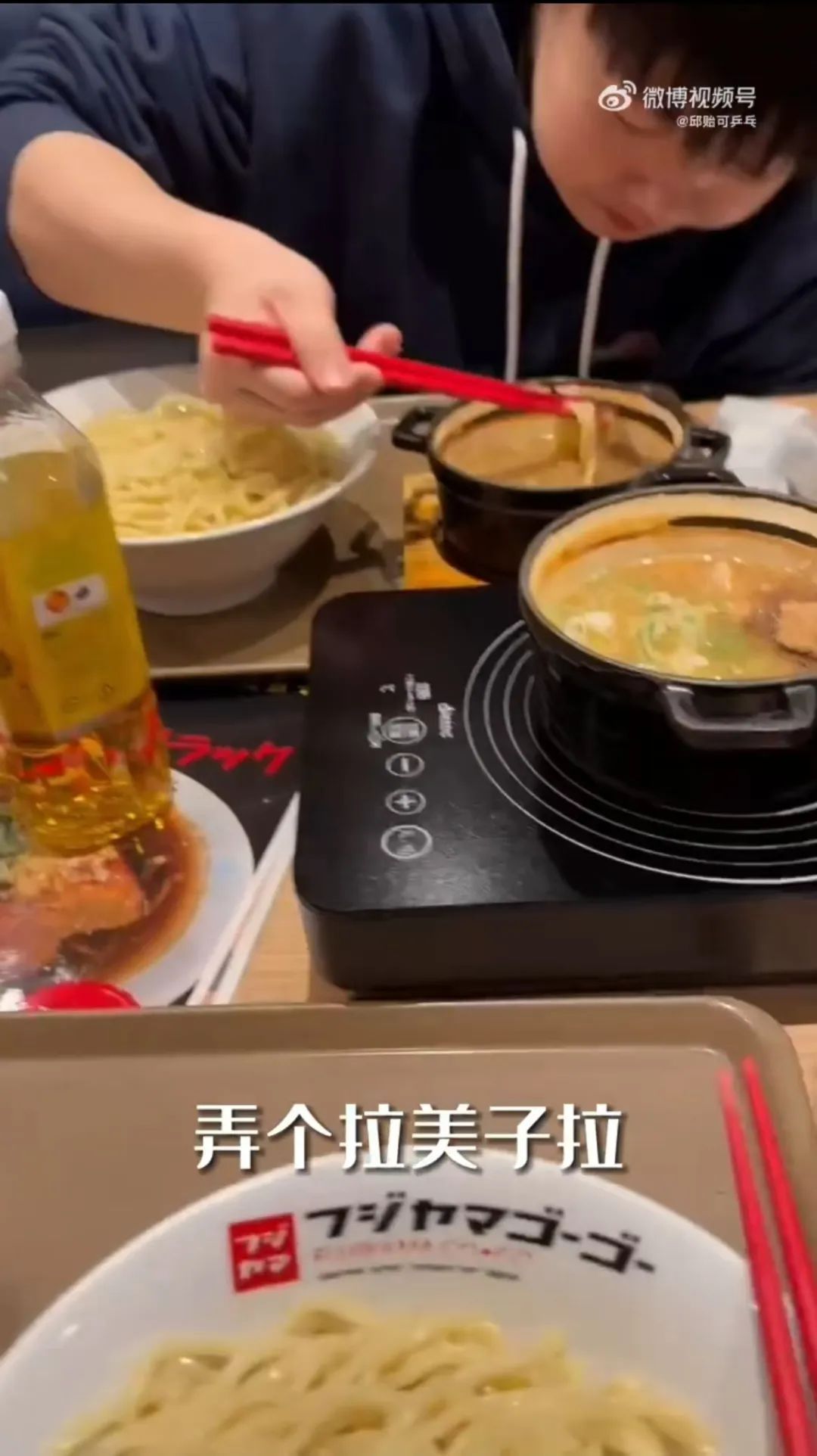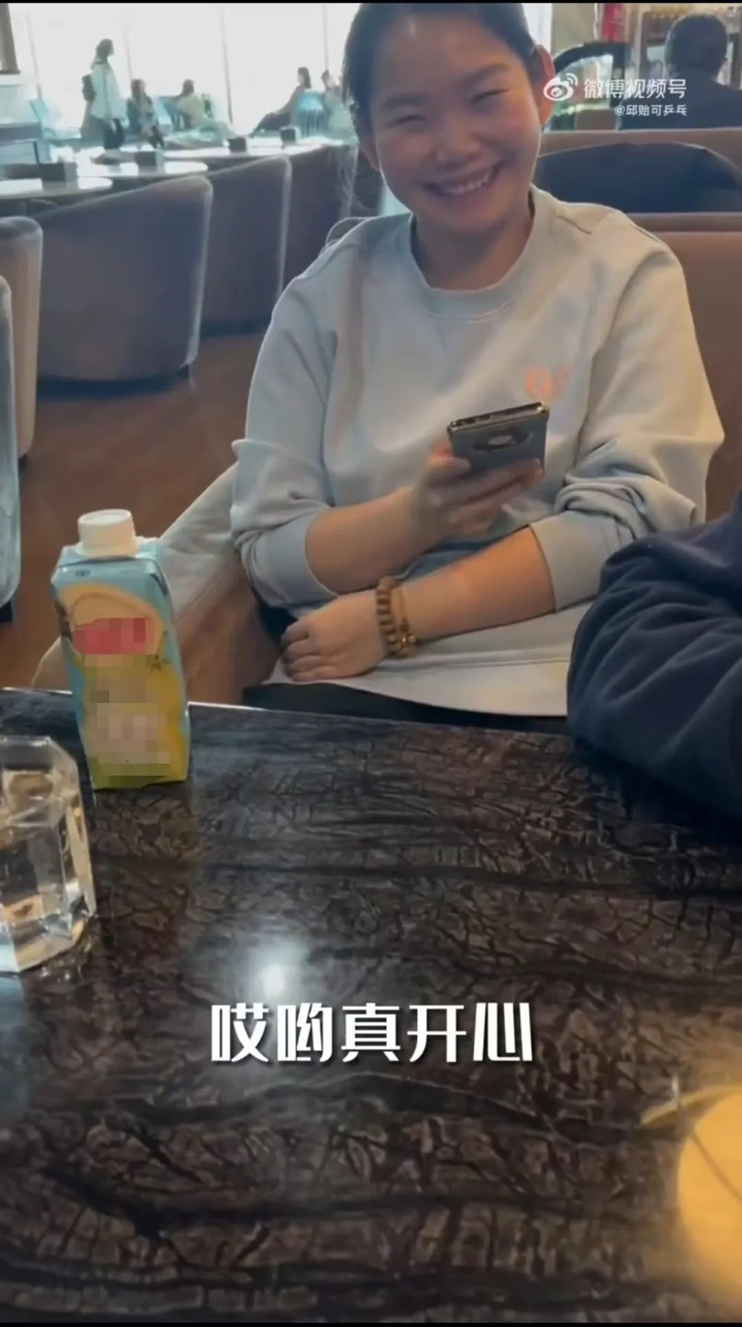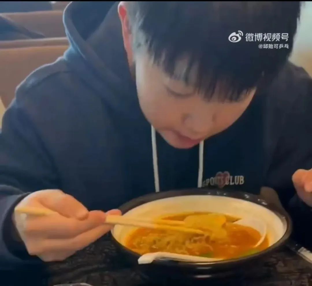 视频来源,在大连机场,孙颖莎饶有兴味地吃着拉面。 r